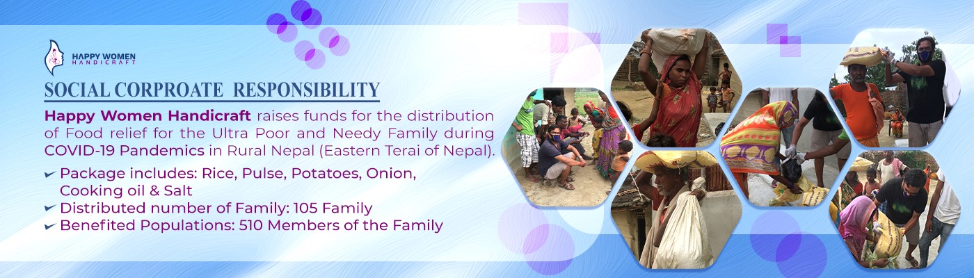 Due to Strict locked down in Nepal. Life was terrible to the Daily wage workers so, Happy women Handicraft initiated Fund raising and also contributed to fund to distribute Food (Rice, Pulses, Onion, Potatoes, Cooking Oils and Salt) to the Rural Nepal(Eastern Terai) to the Needy and poor family of 105. Which benefit about 510 members of the Family of about one month.